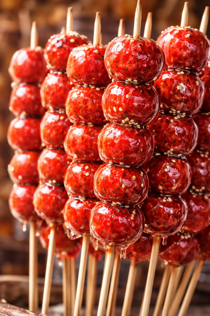 タンフルは、中国北方を中心に広まった伝統的なお菓子です。特に北京では、冬になると屋台で売られる定番のおやつとして親しまれてきました。赤い実が串に刺さり、つやつやした飴で覆われている見た目が特徴です。