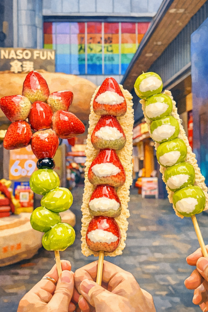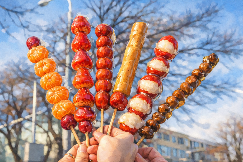 タンフルが再び注目されている理由の一つは、SNSとの相性の良さです。串に刺さった形は写真に撮りやすく、色の組み合わせも分かりやすいため、投稿しやすいスイーツと言えます。