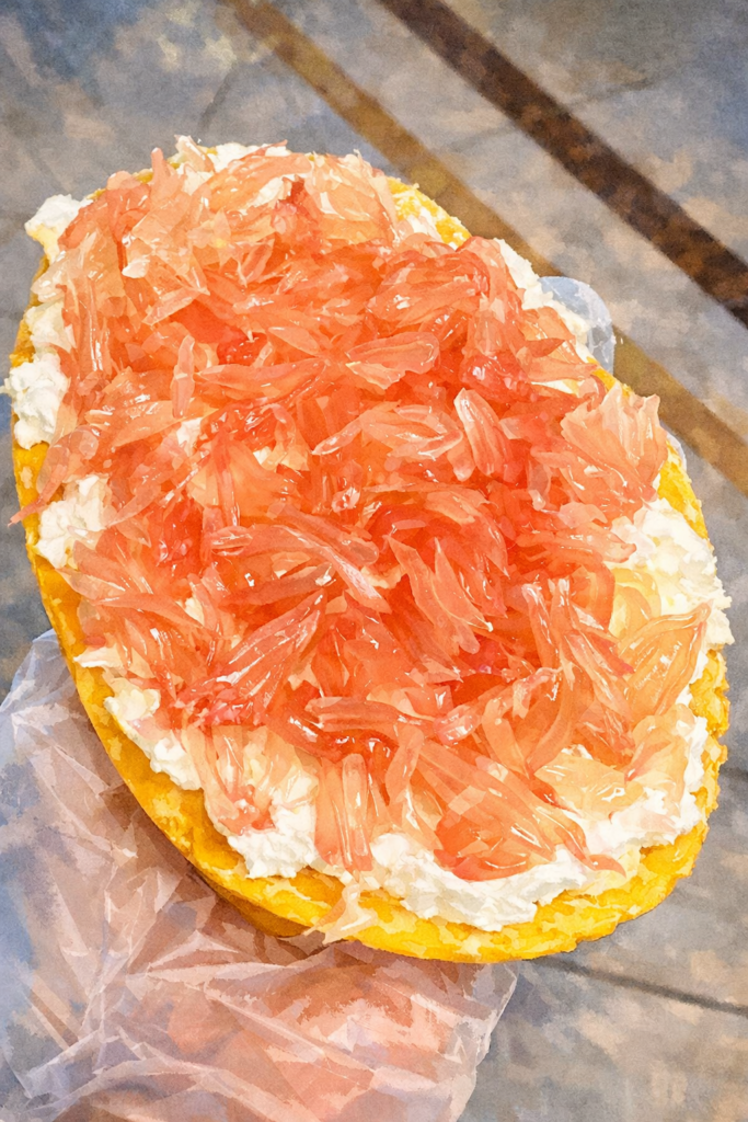 ここで重要なのは、最近のタンフルは「なにかををはさむお菓子」ではないという点です。基本はあくまで果物が主役で、そこに別の素材を組み合わせるという形です。