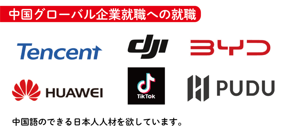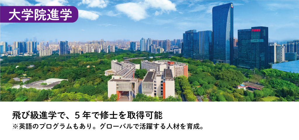 貿易、小売、製造業、旅行、ゲーム、E V等、ほぼ全ての業界が中国と多くの取引を行っています。また、ティックトックを運営するバイトダンスやWECHATで有名なテンセントなど中国系グローバル企業も数多く日本に進出しており、幅広い就職の可能性があります。希望者に対しては、深圳大学大学院への進学もサポート致します。