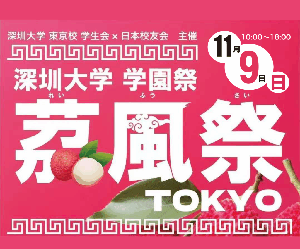 タイトルの「茘風祭(れいふうさい)TOKYO」は、本校の所在地「深圳」の名産であるライチ(れいし:茘枝)と新たなる風を起こす東京校の学生、それをバックアップする深圳大学日本校友会、深圳大学東京校が運営、協力し実施する学園祭として名づけられました。