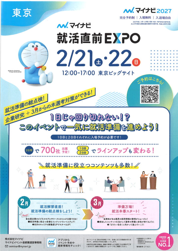 ■2月21日(土)、22日(日) マイナビ2027 就活直前EXPO (学外:東京ビッグサイト)