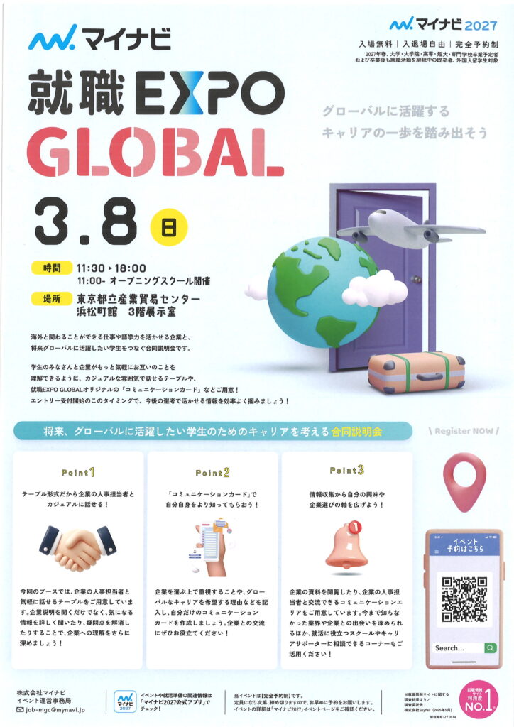 ■3月8日(日) マイナビ2027 就活直前EXPO GLOBAL (学外:浜松町)
